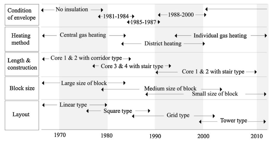 Figure 1 Changes of building features in apartment construction of South Korea since the 1970s