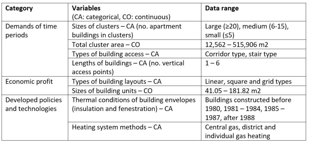 Table 1 indicates how designs of building features were transformed until 2000. This transformation of those building features was examined as to whether they affect actual energy consumption or not; thus effective building features on energy consumption were identified.