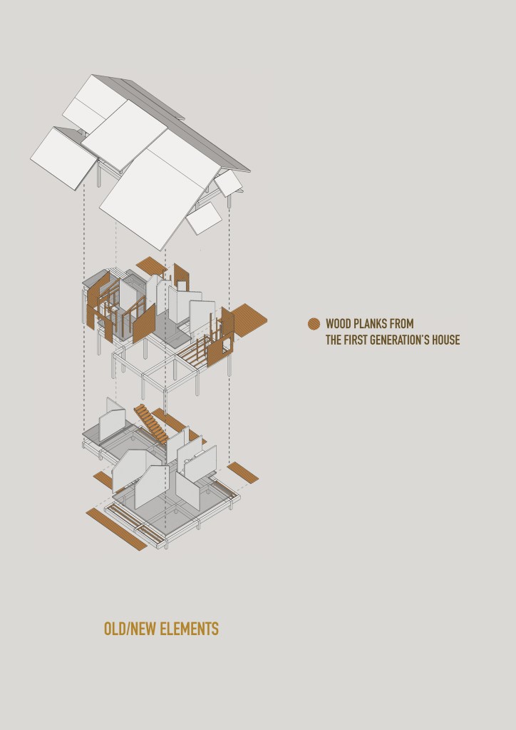 The design and construction process of this house demonstrate an affordable and practical way to improve living condition of people while maintaining and pass over the memory of their past. It responds to the need for change and identity in life.