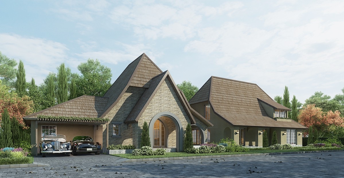 Things went well. Lay outs and plans were adjusted as they were normally done in this stage. What was challenging in the latter part of the preliminary stage was that the client finally decided to have their project built in what they called an “English Cottage” style to ensure their marketing achievement. It was a challenging situation for us. After an agreement to increase design fees to cover the extra work, we sat and thought through how we may design English style houses that still consist open plans, large openings, cosy indoor space, and airy semi-outdoor space that would allow the residents to enjoy nice atmosphere and scenery, while providing them comfort shelters from tropical climate, all of which were somethings we believe to be suitable for this project. We looked back through the history and found that this situation was not unknown to architects in Thailand.