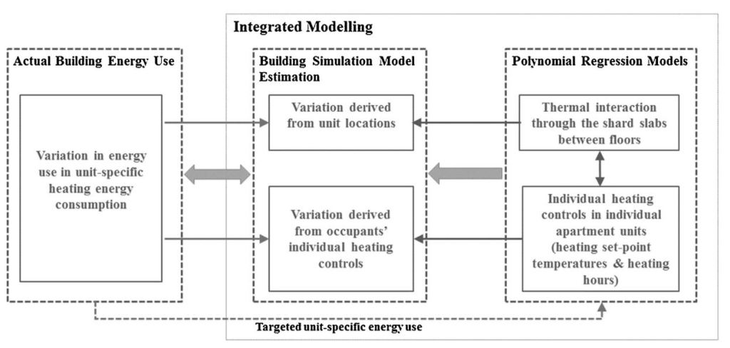 The methods were designed in three steps: identifying unit-specific heating consumption in different locations; creating a building energy model, based on the physical characteristics of apartment units and identifying the influential heating controls on heating energy consumption; and integrating a new set of polynomial model of independent heating controls in units and their interactions between floors.