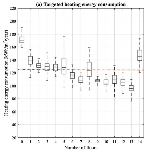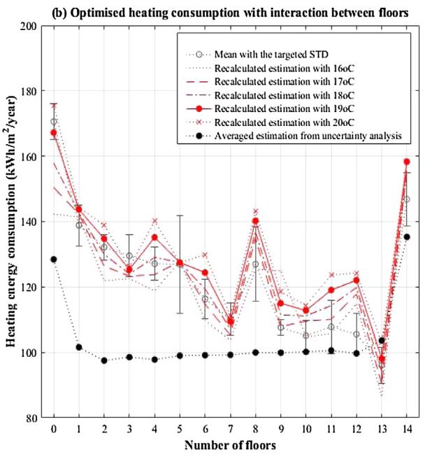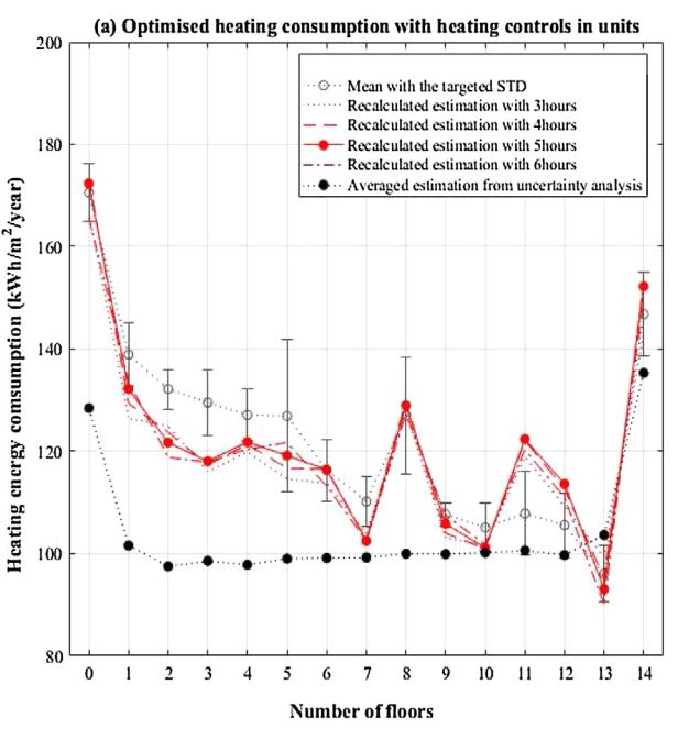 Apartment units located in lower floors need either higher set-point temperatures or longer heating hours in order to achieve the targeted heating energy consumption. Specifically,