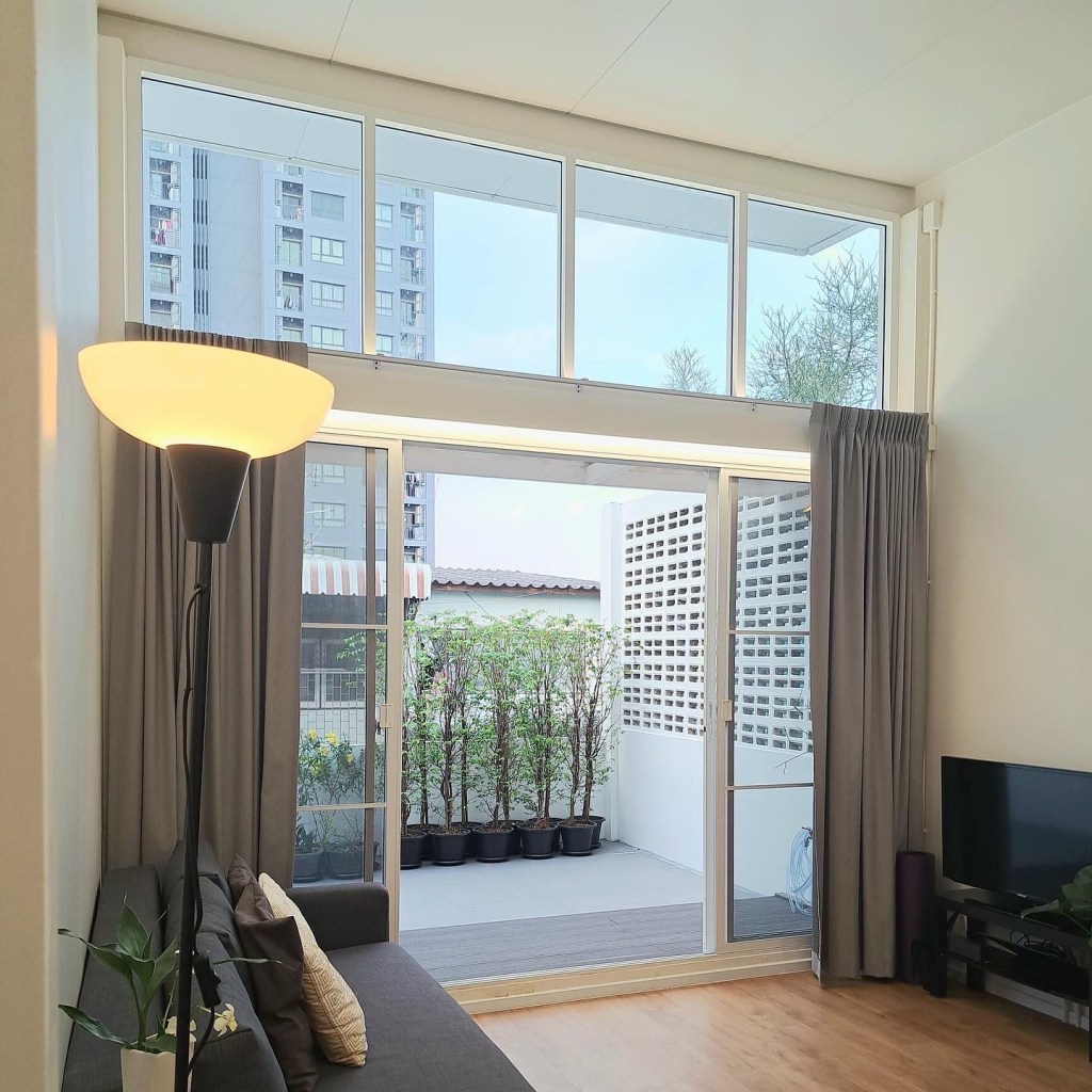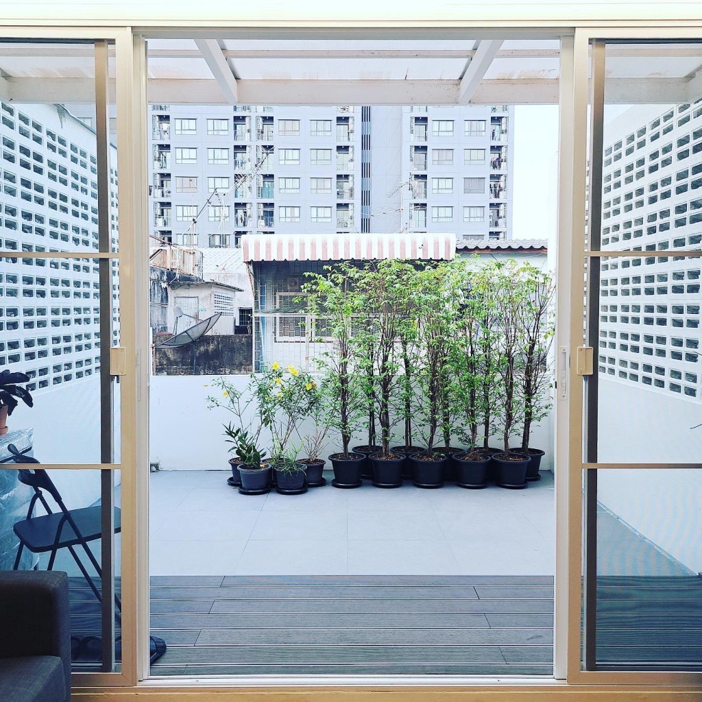 Comparing the ground floor of Prototype 1 and Prototype 2, the above photos show a typical variation of Shophouses built during the 1960s and 1970s in Thailand in terms of ground floorās space. Prototype 1 (left) has a mezzanine, while Prototype 2 (right) does not. The windows of Prototype 1ās mezzanine create continuity of spaces between different floors, and bring natural light and air into the space. Both prototypesā backyard, previously covered by an illegally addition of a roof structure, have been opened up to bring natural light in and to let wind flow through the ground floor space to other floors.