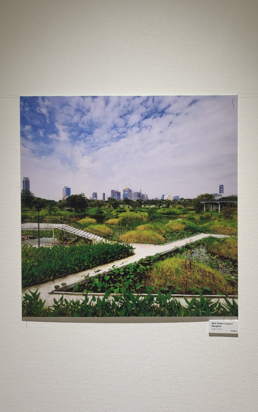 Jang was invited to participate in the 2022 International Exhibition of the Korea Society of Colors Studies. This year the exhibition was held with the theme of “Querencia and Color”. She exhibited a snapshot of the scenery of the new Benjakitti Park with the construction of high-rise buildings in the background. A description of her work is shown below.