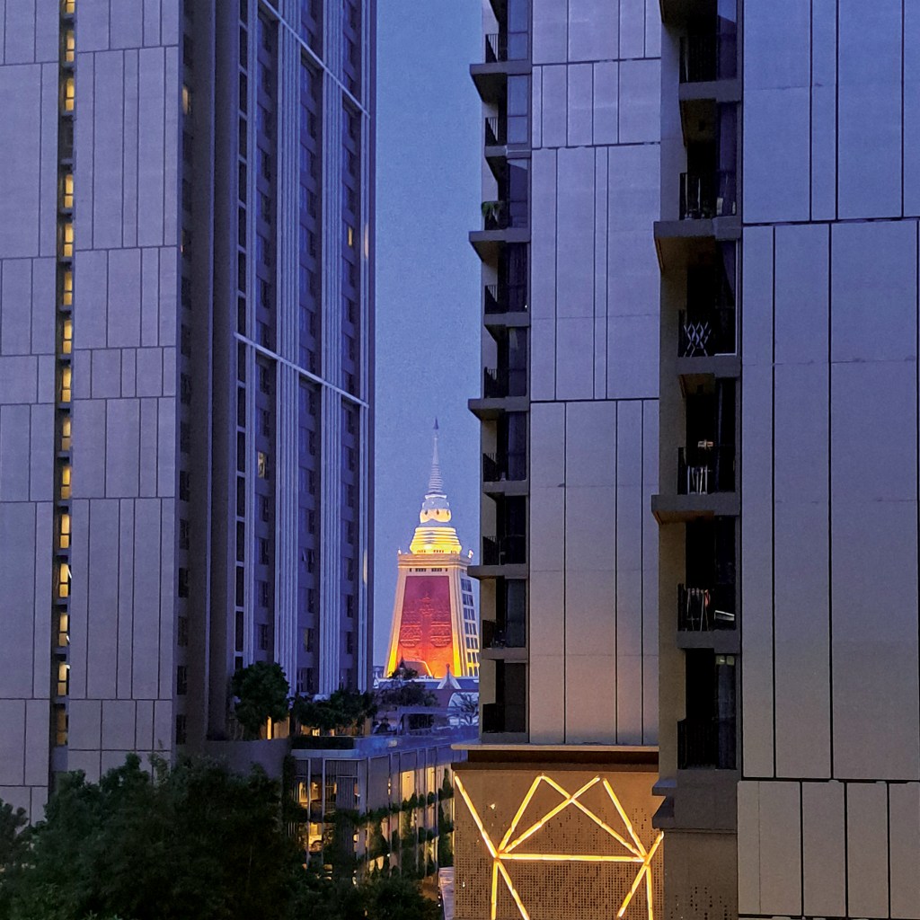 The mixed-use tower of Wat Dhammamongkol, a Buddhist monastery in Bangkok, Thailand, took 20 years to be completed in 1985. The tower accommodates temples, museums, classrooms, and multipurpose spaces. After completion, it was a landmark in the suburb. Nowadays, the area has become a hub for Eastern Bangkok. This 95-meter tower might have been dwarfed by high-rise buildings, elevated expressways, and railways, but it has maintained spiritual purposes, offering a place of serenity for people in a high-density metropolis.